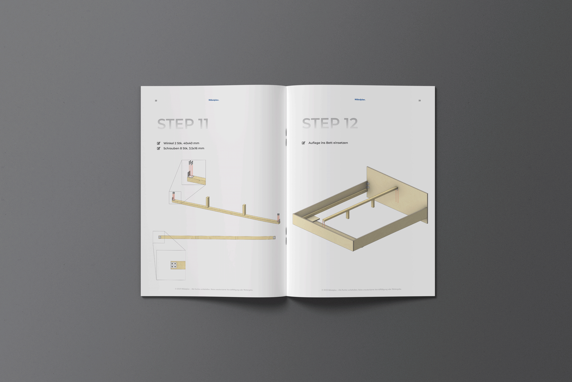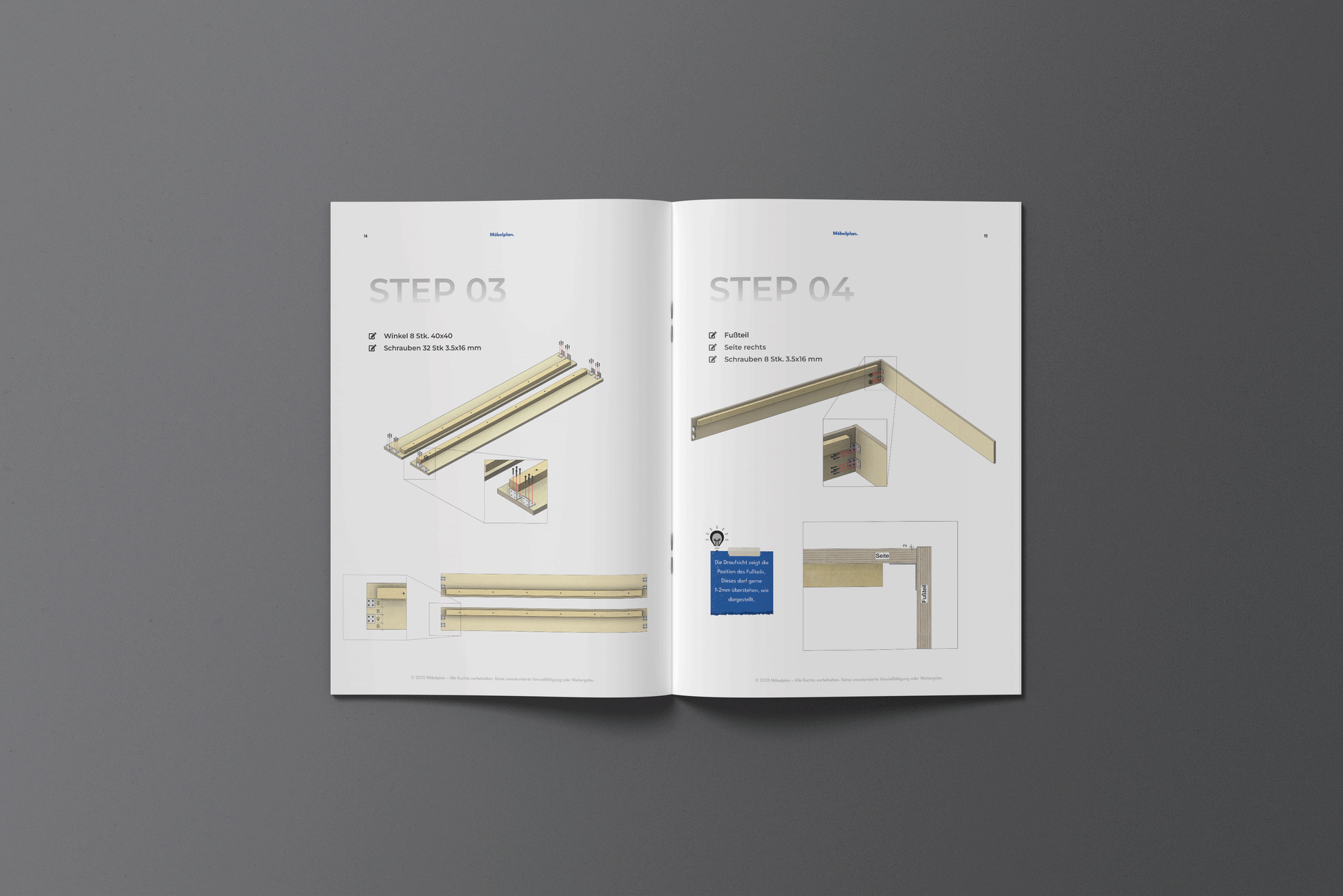 Der Bauplan ist ausschließlich für die private Nutzung bestimmt und darf nur von dir persönlich zum Bau des Möbelstücks verwendet werden.