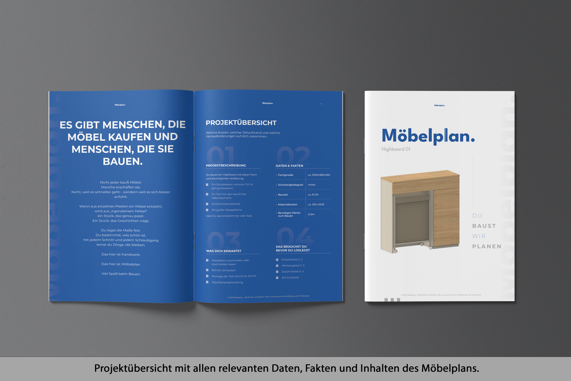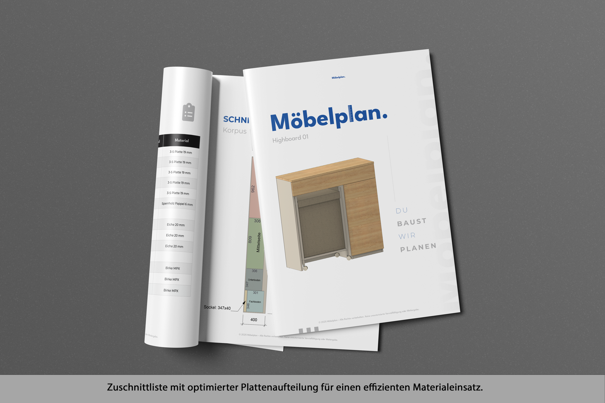 Wie bei allen Möbelplan-Projekten baust du das Highboard selbst und kannst Maße, Material und Oberfläche individuell anpassen.
