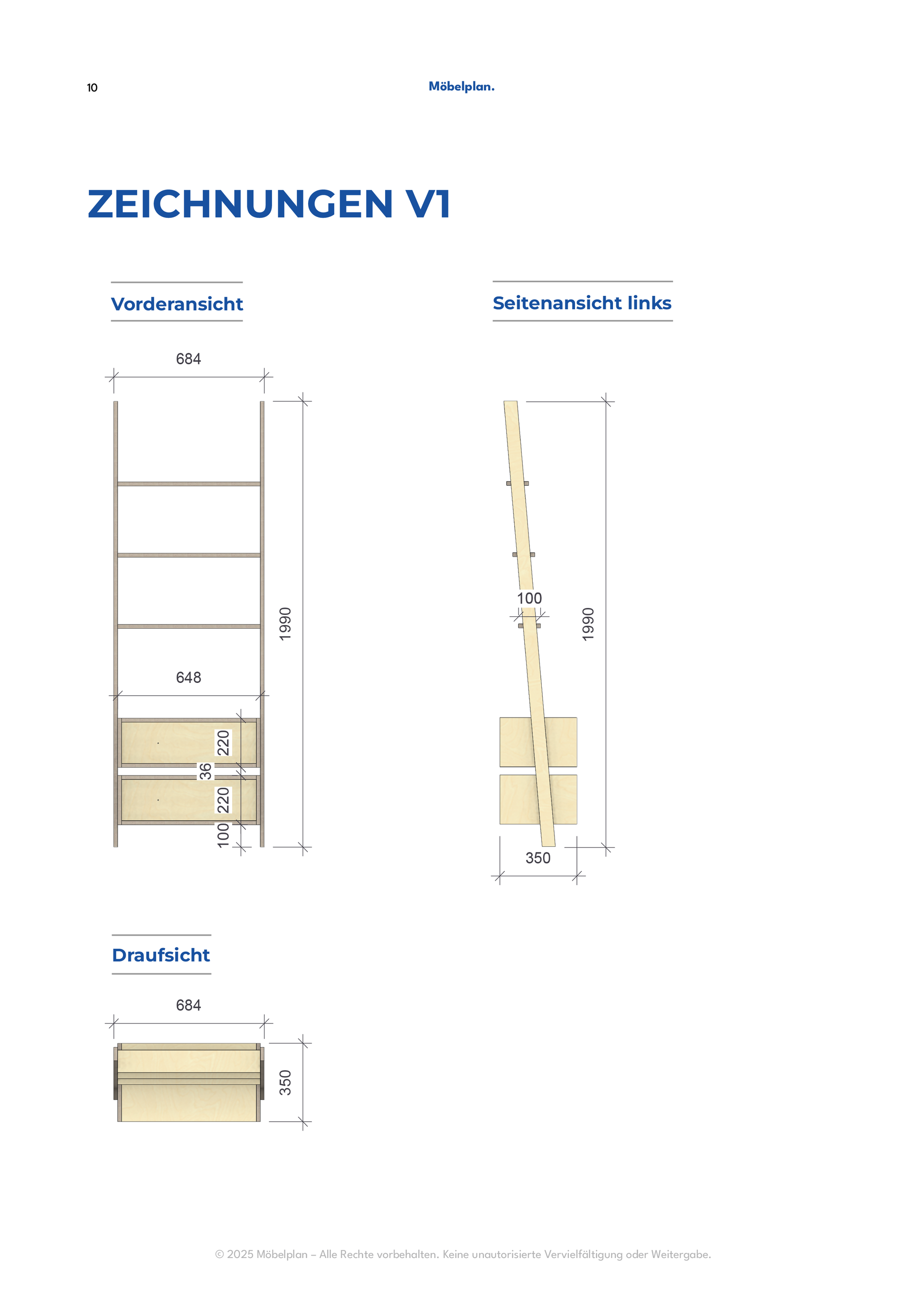 Der Bauplan ist ausschließlich für die private Nutzung bestimmt und darf nur von dir persönlich zum Bau des Möbelstücks verwendet werden.