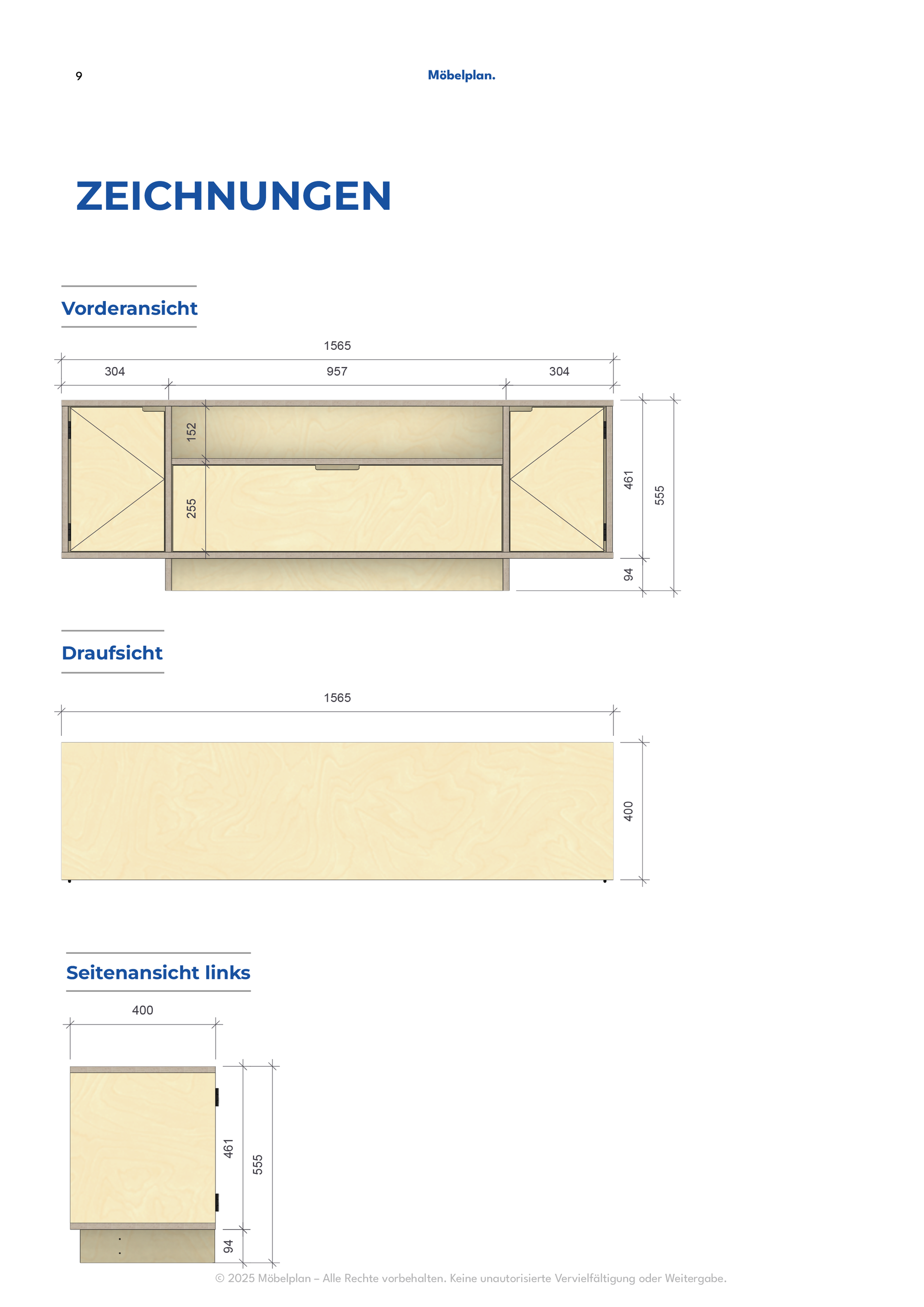 Der Bauplan ist ausschließlich für die private Nutzung bestimmt und darf nur von dir persönlich zum Bau des Möbelstücks verwendet werden.