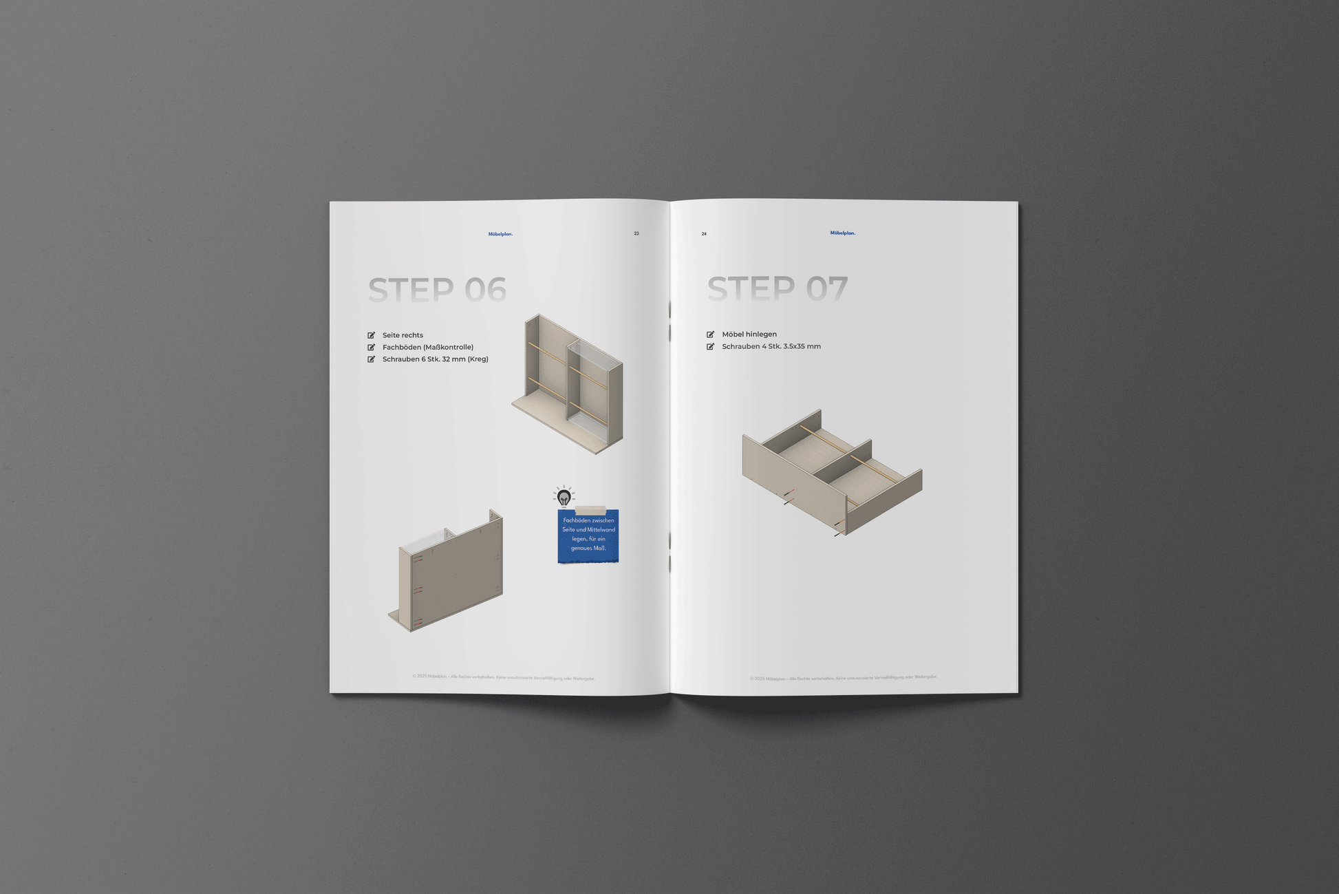 Der Bauplan ist ausschließlich für die private Nutzung bestimmt und darf nur von dir persönlich zum Bau des Möbelstücks verwendet werden.